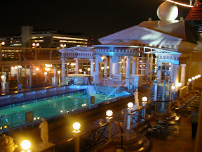 The pool at night, with the cool lights
