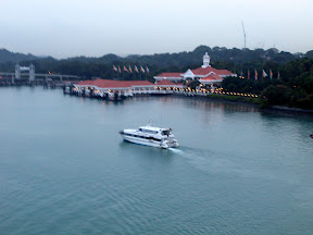 We had our dinner at this restaurant serving chinese food. Quite nice... But we still not full, so we went up to eat the buffet, forgot to take pictures of it. So i had 2 servings of it, real full then. And the food was good, real nice. We had not set off, still around Singapore, so i took some shots of the surroundings, a little shaky cause my digi camera a little old and yeah u get the point...