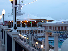 We went to play basketball soon after. Took out my slippers and started play. 5 mins later tio blister on both legs. Ouch. Played for 2 hours before going for dinner... Then the ship started chionging back to Singapore...